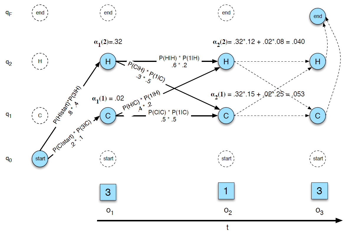 를 구하는 Task이다. (벌써 온도를 구하고 싶을 수도 있는데, 그건 Decoding Task에서 다루므로, 일단 차근차근 본다고 생각하자. 분명 Foward도 유용한 알고리즘이니까)
