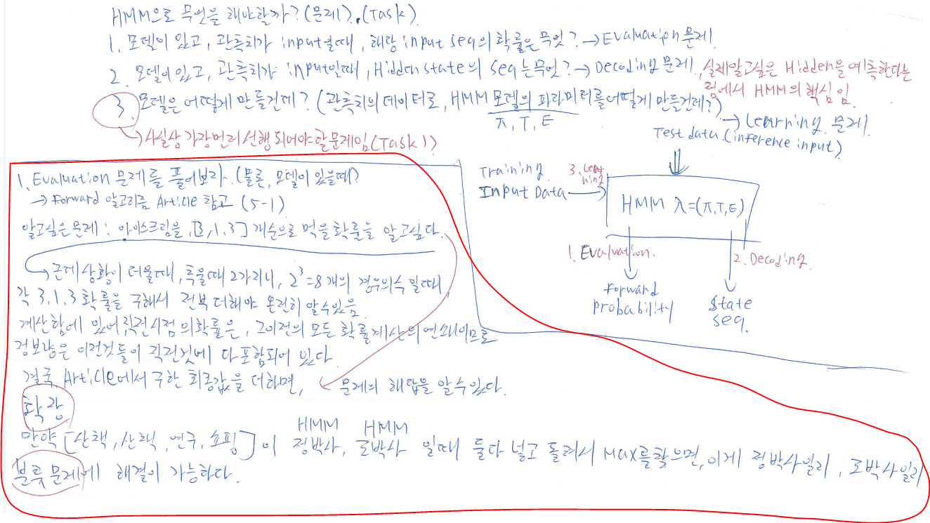 이전 시간에 HMM을 설명할때, 해결할 수 있는 문제 1번째는 Evaluation Task라고 많이 표현되는데,
